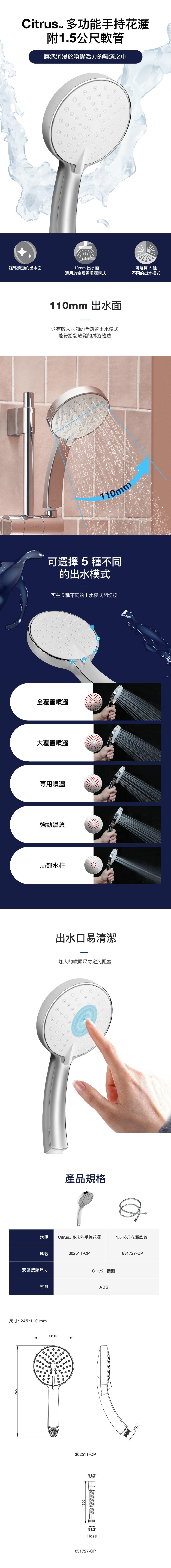 Citrus 多功能手持花灑 附1.5公尺軟管