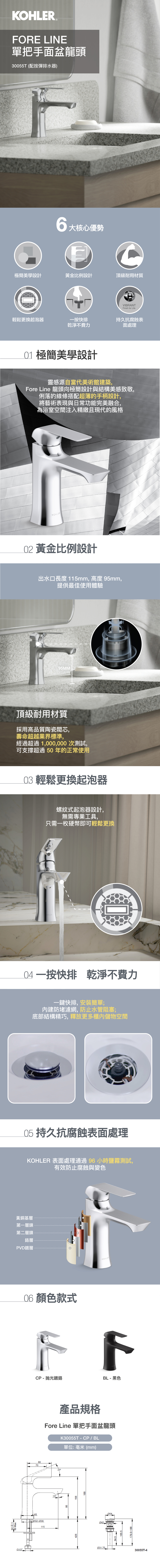 • KOHLER 陶瓷閥芯的使用壽命遠超過業界標準,經久耐用